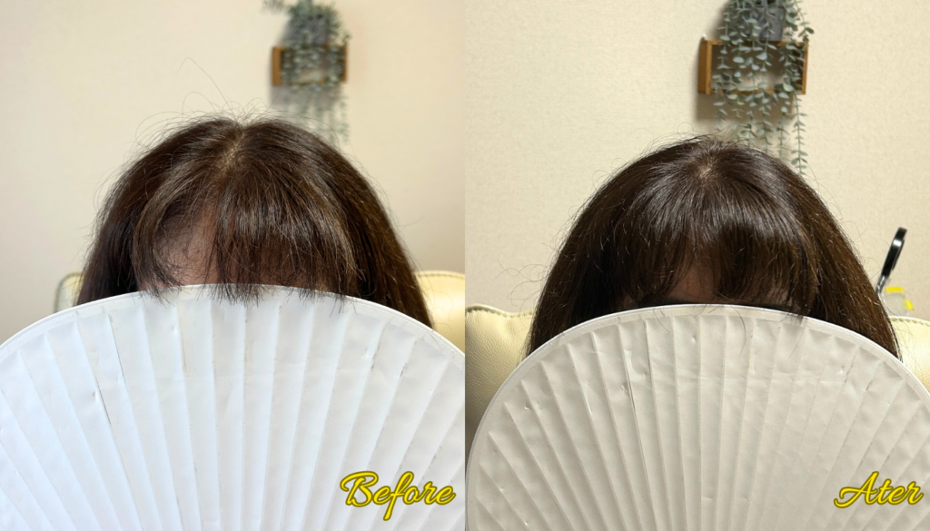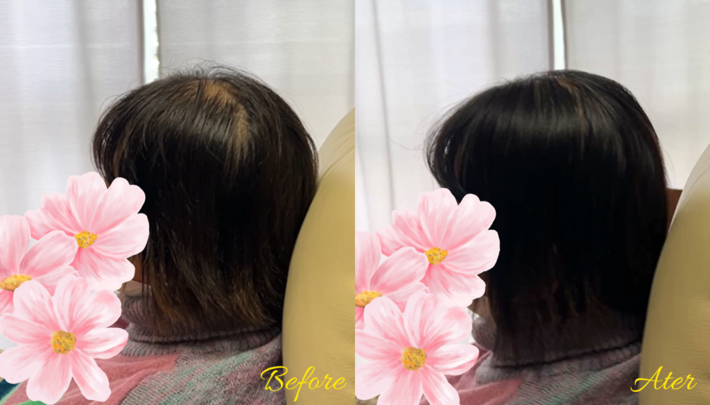 ここ5年ぐらいでどんどん髪が薄くなってきて焦っていた。人にも会いたくないし、外にも出たくなくなっていた。本当に増えて嬉しいです。